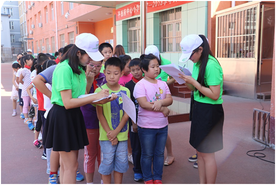兒童出現(xiàn)視力問題,大都從四、五年級(jí)開始,此次活動(dòng)也著重選擇了4、5年級(jí)的學(xué)生,進(jìn)行視力檢查,及時(shí)發(fā)現(xiàn),并給予準(zhǔn)確指導(dǎo)與干預(yù)。孩子們排著隊(duì)有序的進(jìn)行視力檢查,一張張?zhí)煺妗⒒顫姷男δ?,很快便感染了在?chǎng)的所有人,志愿者們?cè)跉g快的氣氛中,給孩子們普及著眼健康知識(shí),及日常學(xué)習(xí)、玩電腦時(shí)需要注意的細(xì)節(jié)。