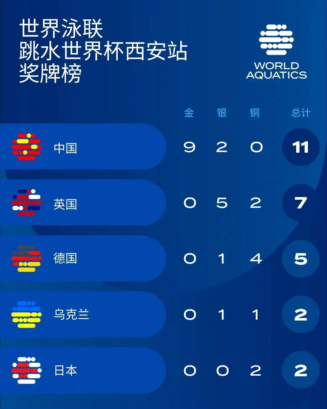 2023跳水世界杯獎牌榜